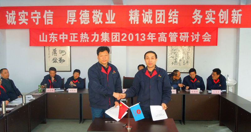 山東中正熱力集團2013年高管研討會于2013年3月29日上午8:00在集團總部三樓會議室召開,會期三天。會議由集團公司董事長李廣法主持,集團公司各部門、各權(quán)屬公司領(lǐng)導(dǎo)參加了會議。會議上,各單位、各部門匯報了2012年度工作報告和精細(xì)化管理實施方案;總經(jīng)理蔣俊卿作年度工作報告,公布兌現(xiàn)2013年度年薪,與各獨立核算單位和部門簽訂2014年度安全、經(jīng)營目標(biāo)責(zé)任書;討論通過了集團中長期規(guī)劃(2014-2023年度)及《全面推進(jìn)集團精細(xì)化管理,為中正品牌和效益的提升而努力》、《集團資本運營管理實施意見》、《關(guān)于完善市場體系建設(shè)的實施意見》三個報告。