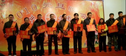 本次年會共分為三部分。第一部分是2009年總結(jié)會,于上午成功召開;第二部分是2009年優(yōu)秀員工頒獎大會,于下午三點(diǎn)隆重舉行,來自集團(tuán)及分公司的十二位優(yōu)秀員工受到表彰;第三部分是2010年元旦晚會,于下午四點(diǎn)開始,在一派喜氣洋洋中,應(yīng)邀嘉賓、集團(tuán)及各分公司領(lǐng)導(dǎo)、集團(tuán)及各分公司員工、員工家屬等共計(jì)200余人一起度過了美好而難忘的快樂時光。